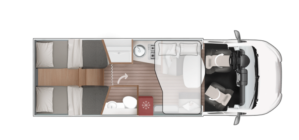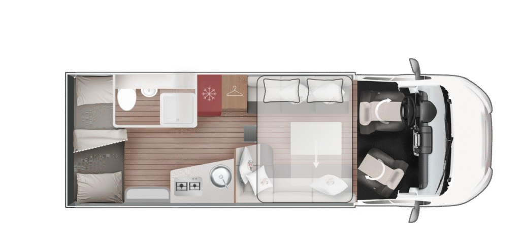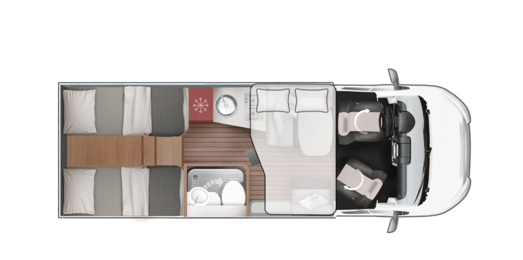 De Kronos-serie van Roller Team biedt moderne half-integrale en alkoofcampers op Ford- of Fiat-chassis voor gezinnen en groepen. Met 4 alkoofmodellen en 9 half-integrale indelingen met hefbed variëren lengtes van 6,99 m tot 7,45 m met 4-8 slaapplaatsen. Trendy design met “Frozen White” cabine, XXL-garage tot 300 kg en 10 jaar waterdichtheidsgarantie. Flexibele bedopties zoals alkoofbed (211×160 cm) en elektrisch hefbed. Ontdek ruimtevolle avonturen met Kronos half-integrale en alkoofcampers in stijl.