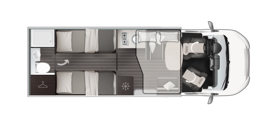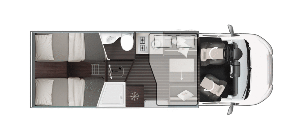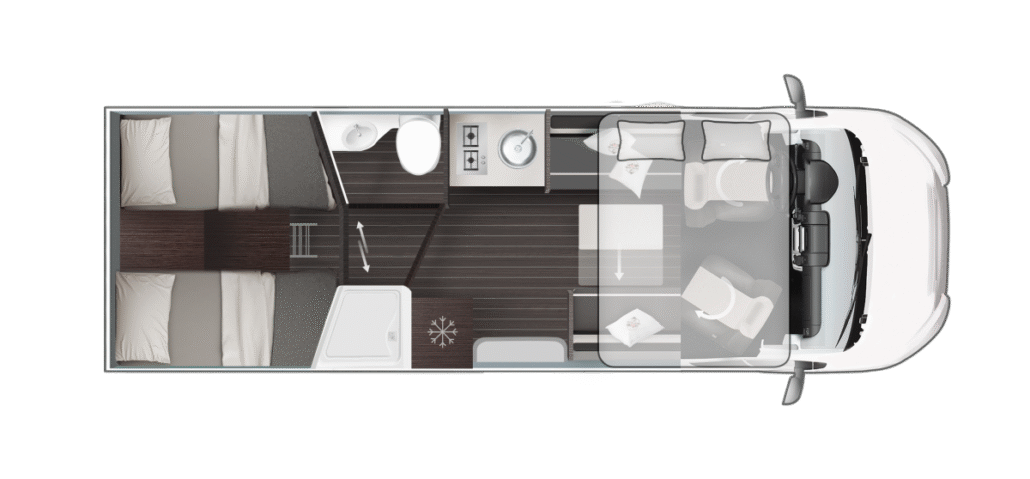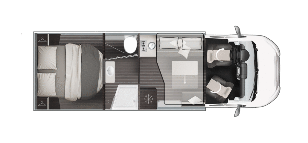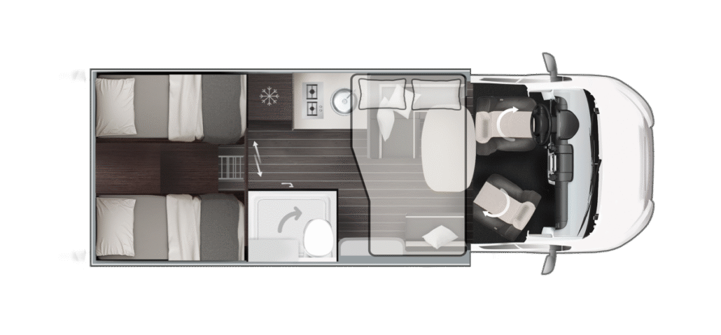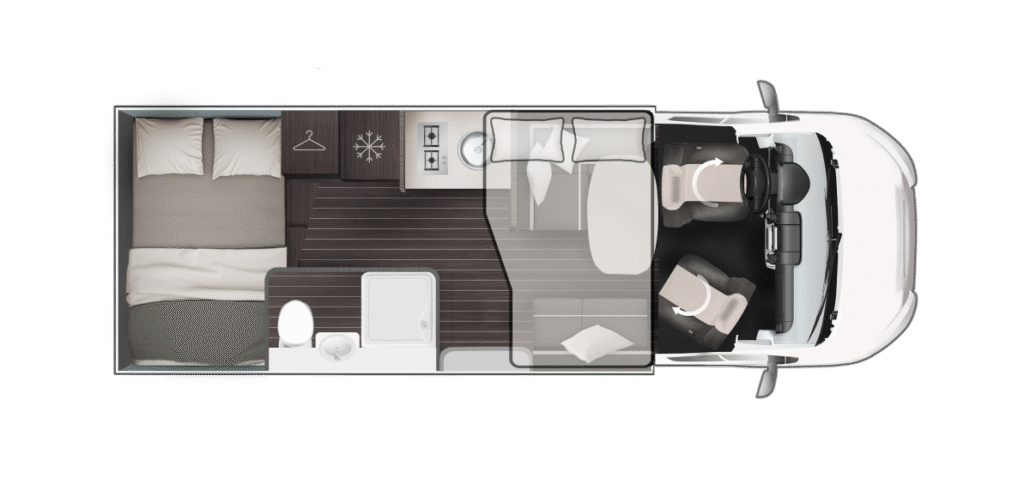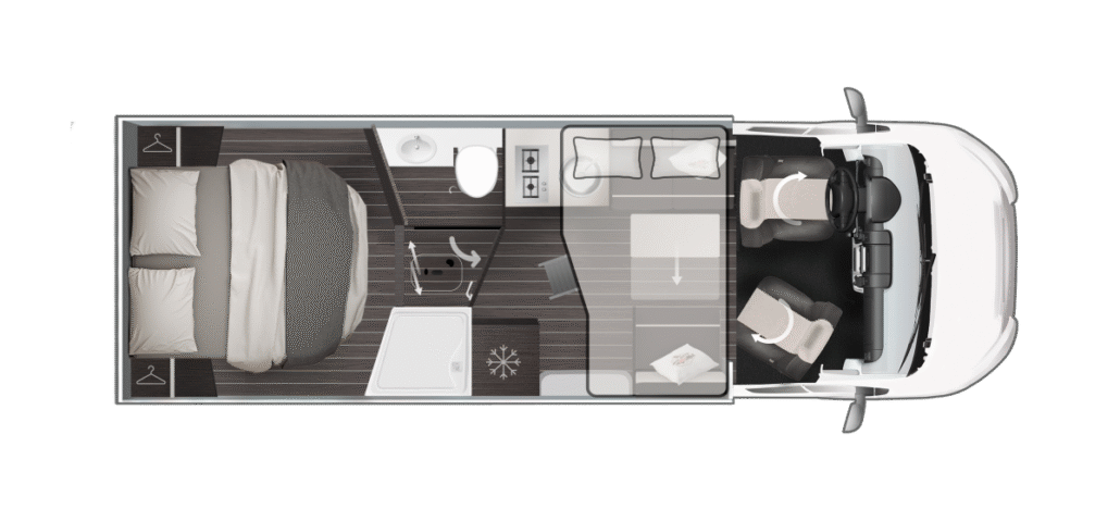 De Zefiro-serie van Roller Team biedt 8 gedeeltelijk geïntegreerde en 2 volledig geïntegreerde modellen op Ford- of Fiat-chassis voor gezinnen en avonturiers. Lengtes van 6,99 m tot 7,45 m met 3-5 slaapplaatsen, queensbed of hefbed-opties. “Solid Grey” exterieur, XXL-garage tot 300 kg en 10 jaar waterdichtheidsgarantie. Premium afwerking met Open Sky dak, 158 L koelkast en Truma Combi 6. Ontdek luxe reizen met Zefiro half-integrale en integrale campers.